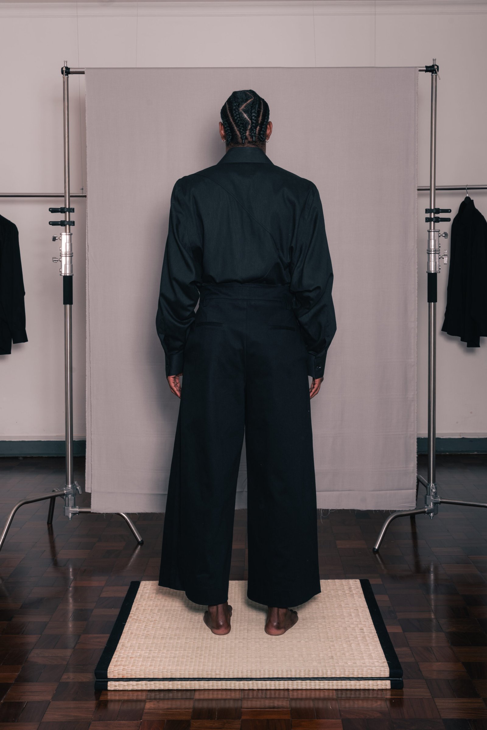 Conta ainda com bolsos laterais funcionais, que mantêm a praticidade no uso cotidiano. Confeccionada em tecido produzido com fibras TENCEL™ Lyocell pela Canatiba Têxtil, unindo conforto, resistência e sustentabilidade. Pode ser realizada sob medida e em diferentes materialidades, além das divulgadas.